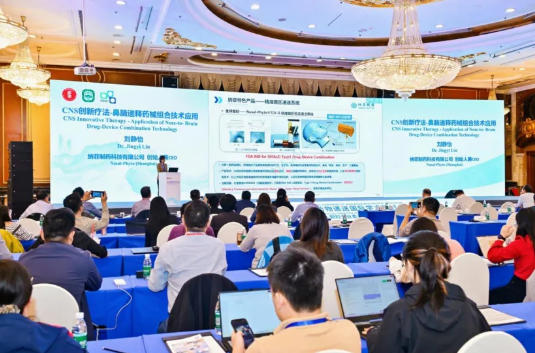 纳菲制药科技有限公司创始人兼CEO刘静怡介绍了“CNS创新疗法—鼻脑递释药械组合技术应用”,她表示,传统鼻喷剂虽可用于脑部疾病,但药物主要经黏膜入血,再穿越血脑屏障,而非直接入脑。新冠病毒可以经嗅神经入脑的尸检证据,为“鼻-脑”直接通路提供了人体验证。纳菲制药设计了一套独特的给药装置,通过一根柔软的鼻内介入管,以每分钟10微升的极微量速度将药液精准、持续地滴注于富含嗅神经的上鼻道嗅区,从而实现药物绕过血脑屏障,高效入脑。