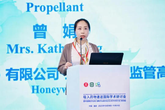 霍尼韦尔(中国)有限公司亚太区产品监管高级经理曾娟介绍了“首款采用低全球变暖潜能值推进剂的吸入式药物改良配方的监管历程”,曾娟及其团队系统介绍了其第四代吸入制剂抛射剂SOLSTICE®的研发历程与优势。该抛射剂作为第三代HFA-134a的环保替代品,具备超低全球变暖潜能值和零臭氧破坏潜能值的核心优势,能帮助制药企业大幅削减范围三碳排放。霍尼韦尔通过与国际药企及CDMO合作,提供从毒理研究、cGMP生产到全球注册的全链条支持,旨在推动吸入制剂行业向更环保、安全的方向转型。